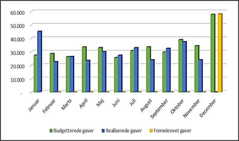 - Der er kommet gaveindtægter for lige under 326.000 kr til og med november (inklusiv forventing for resten af november)